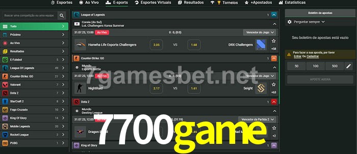 A aposta 7700game oferece aos jogadores a experiência mais conveniente de apostas em eSports!